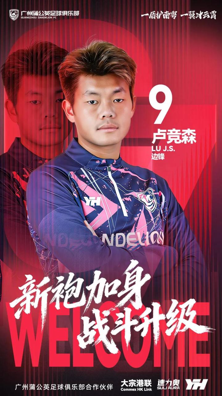 盾护南粤,翼冲云霄。2026赛季卢竞森将身穿广州蒲公英战袍出征各项赛事,期待他未来为广州球迷带来更多精彩表现,与广州蒲公英一同书写更多新篇章!