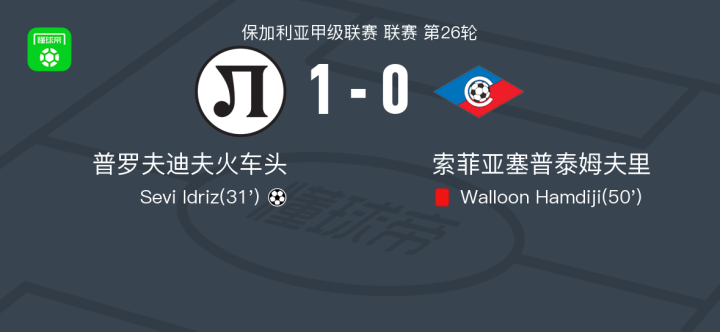 第31分钟,普罗夫迪夫火车头球员兹瓦茨助攻Sevi Idriz打入一球。