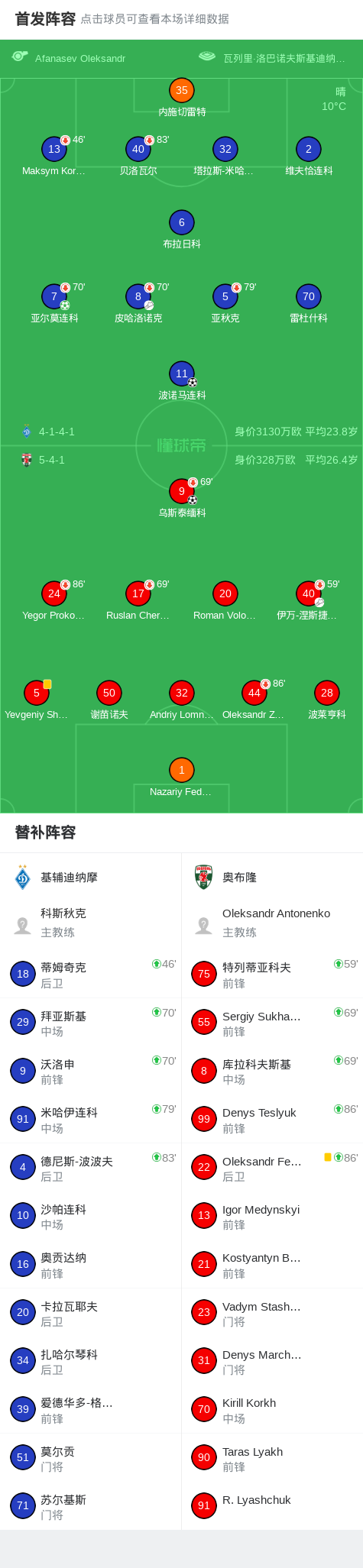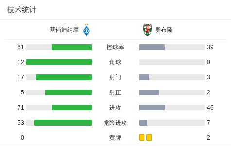基辅迪纳摩2-1逆转基辅奥布隆,波诺马连科破门,亚尔莫连科点射