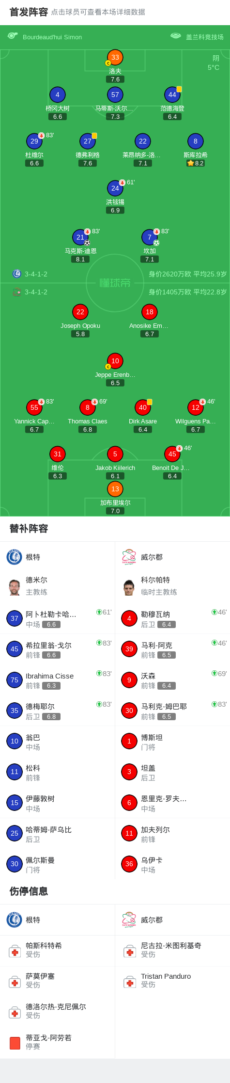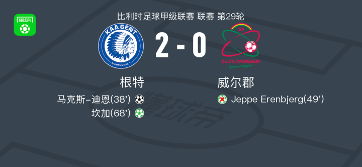 北京时间3月14日比利时足球甲级联赛 联赛 第29轮,根特主场对阵威尔郡。根特马克斯-迪恩破门,坎加破门。最终比分根特 2-0 威尔郡。