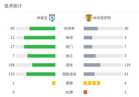 第75分钟,科布雷罗阿球队因萨乌拉尔德吃到第二张黄牌。