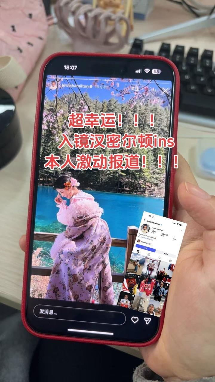 该女子表示:太激动啦!!!没想到那么幸运入镜了汉密尔顿老师社媒!欢迎老师来到中国也感谢老师喜欢中国文化! 感谢大家的捞捞!希望大家都天天开心!万事胜意!