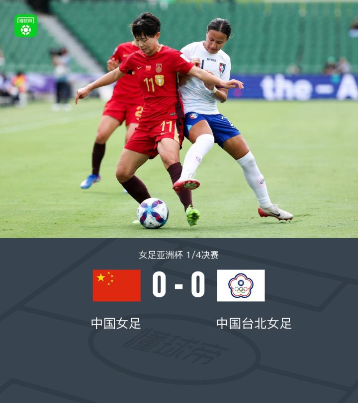 北京时间3月14日女足亚洲杯1/4决赛,中国女足对阵中国台北女足。90分钟战罢中国女足0-0中国台北女足,比赛进入加时赛。