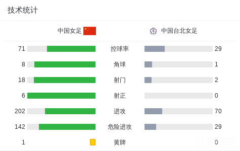 90分钟战报:中国女足0-0中国台北女足,王霜进球被吹