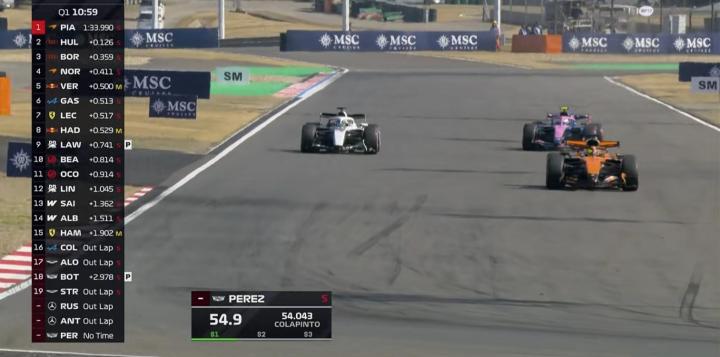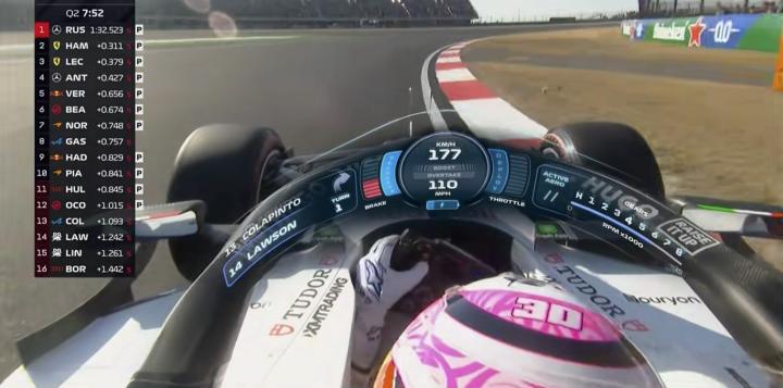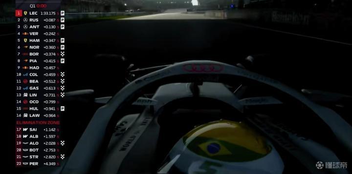 Q1停表,塞恩斯、阿尔本、阿隆索、博塔斯、斯特罗尔、佩雷兹6位车手被淘汰,与SQ1完全一致。