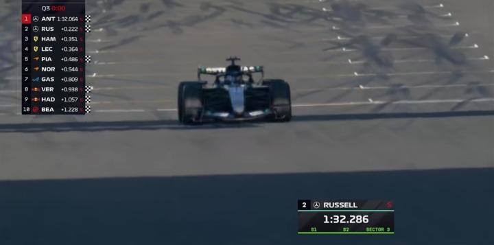 拉塞尔最后一圈成绩没有超越队友安东内利,安东内利个人首次夺杆!