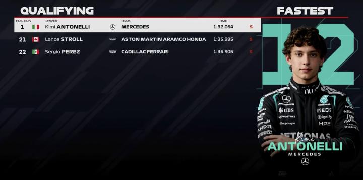 安东内利刷出Q3场上最快圈速1分32秒322;