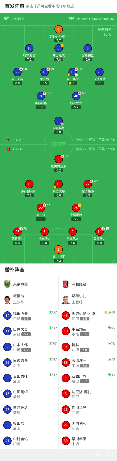 北京时间3月14日日本职业联赛J1 东区 第6轮,东京绿茵主场对阵浦和红钻。东京绿茵染野唯月破门。最终比分东京绿茵 1-0 浦和红钻。