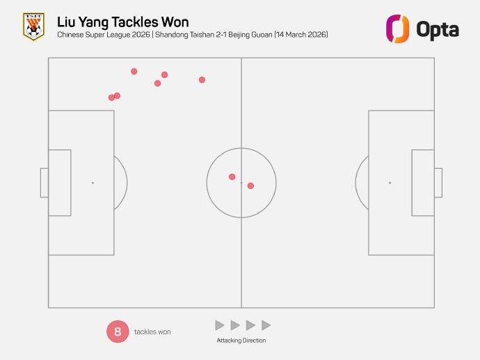 8次抢断,刘洋刷新山东泰山队史球员中超单场抢断纪录能干利艾 @懂球帝03-14 18:11北京时间3月14日,中国足球超级联赛第2轮迎来一场焦点大战,山东泰山主场对阵北京国安。凭借着克雷桑和谢文能的进球,山东泰山最终2-1战胜北京国安。本场比赛,山东泰山队球员刘洋首发登场并打满90分钟。赛后,据知名数据机构Opta的统计,刘洋单场完成了8次抢断,刷新了自2012年Opta采集相关数据以来,山东泰山球员中超单场抢断纪录。展开更多