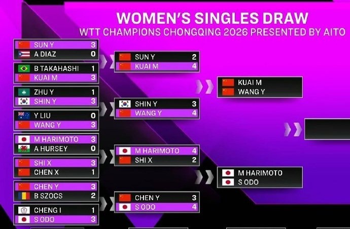 WTT重庆冠军赛女单四强出炉:国乒、日乒各两席gaoniu @懂球帝03-14 22:043月14日,随着石洵瑶2-4不敌张本美和,无缘重庆冠军赛四强。本站赛事女单四强出炉,国乒、日乒各两席。女单四强蒯曼🇨🇳VS王艺迪🇨🇳张本美和🇯🇵VS大藤沙月🇯🇵 展开更多