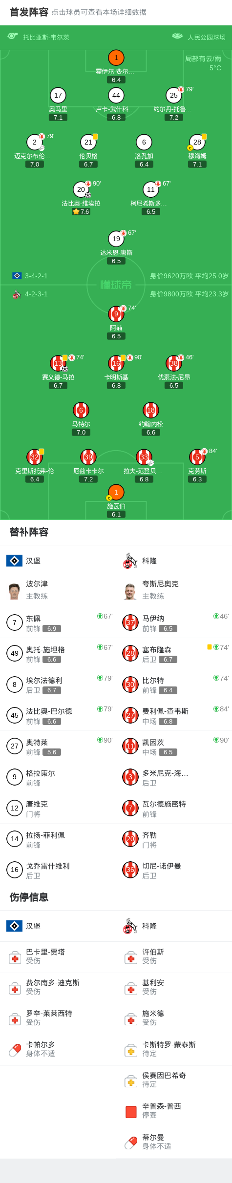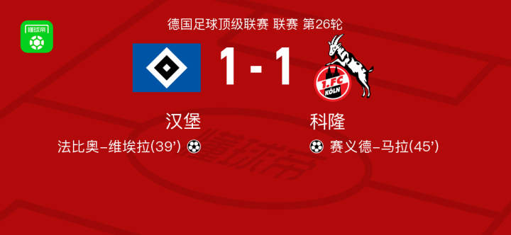 汉堡1-1科隆,法比奥-维埃拉打破僵局,赛义德-马拉扳平比分