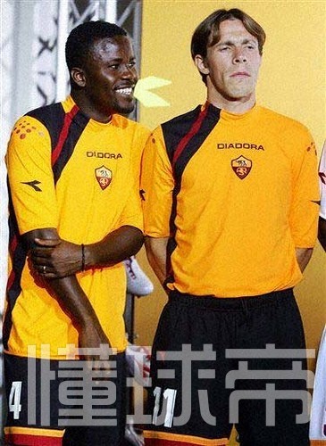 迪亚多纳的最后一个赛季,客场球衣变成了黄色,这也是罗马唯一的一个穿黄色球衣的赛季,乍一看以为是阿森纳,这一次,黑色成为了配色,倾斜的条纹也增添了一丝美感,那个赛季,罗马也因为电话门事件递补进入欧冠。