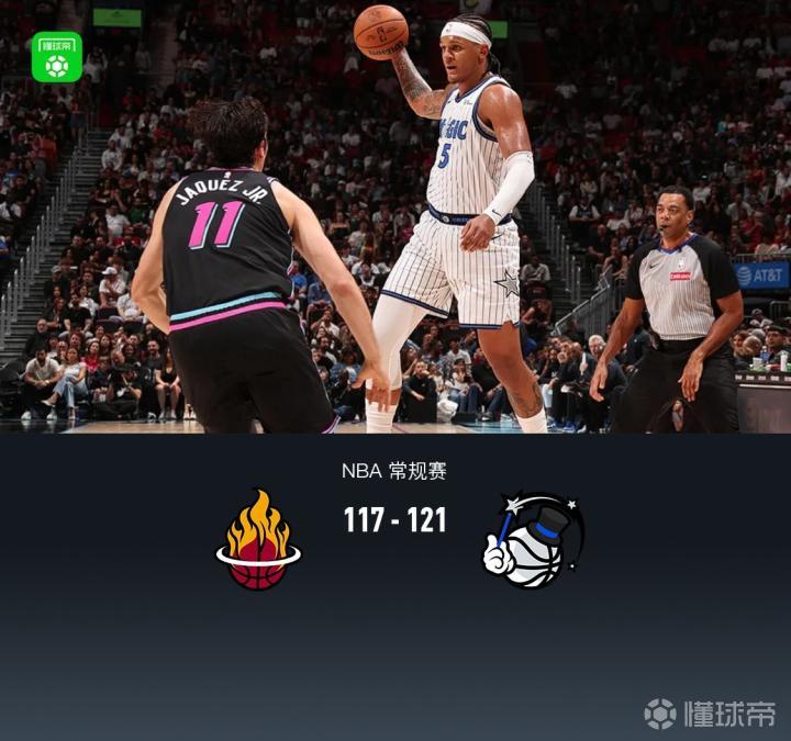 魔术121-117终结热火7连胜,班凯罗27+8+7,阿德巴约20+7,希罗14中4