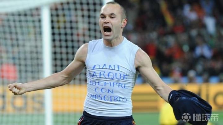 (伊涅斯塔在2010年世界杯打进绝杀球之后悼念哈尔克)