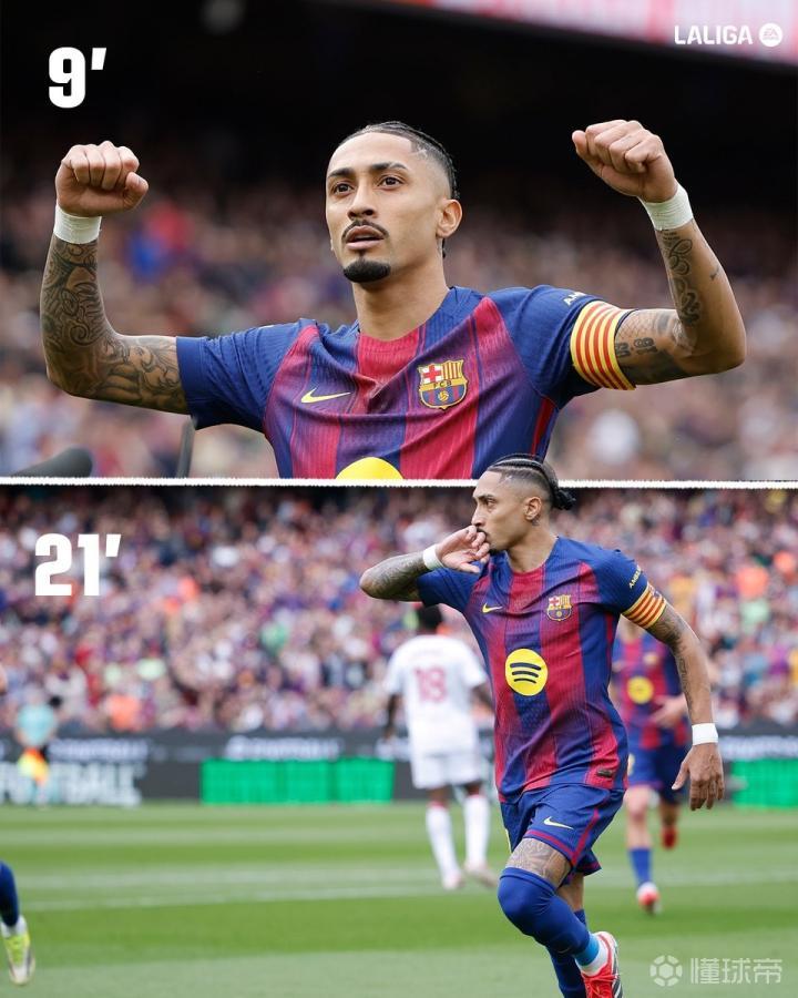 西甲单场打入两粒点球,拉菲尼亚是本世纪巴萨球员第六人