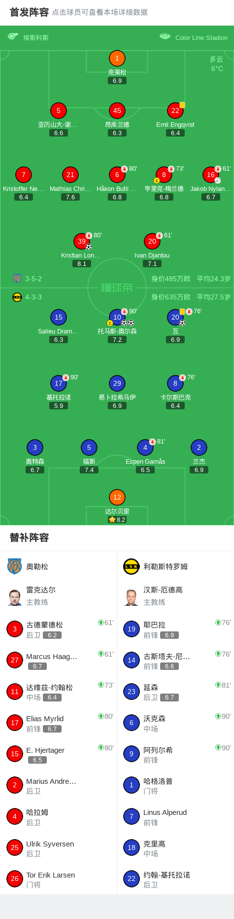 第6分钟,奥勒松球员Jakob Nyland Ørsahl助攻Kristian Lonebu打入一球。