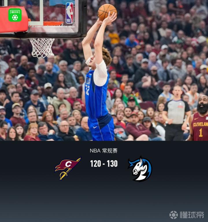 第四节骑士哈登拿下9分,独行侠弗拉格拿下12分,最终骑士120-130不敌独行侠