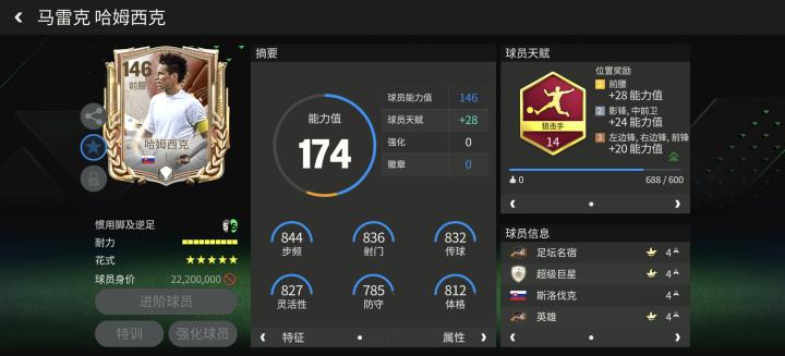 巅峰荣耀球员哈姆西克配备了狙击手天赋,对他进攻端表现提升极大。五星花式星级搭配高级油炸丸子花式让他的持球突破更加犀利。