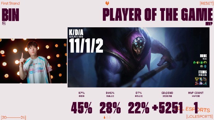 本局MVP给到数次一打多的Bin!