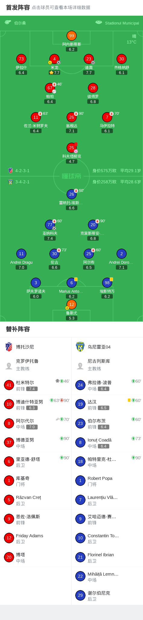 第38分钟,博托沙尼球队科夫塔柳克吃到红牌。