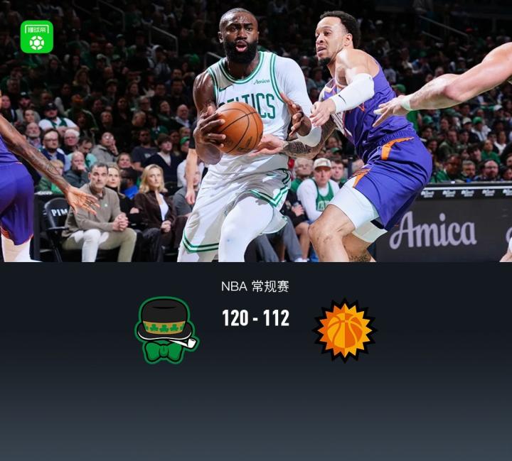 凯尔特人120-112力克太阳,布朗41+7+6,塔图姆21+7,布克40分