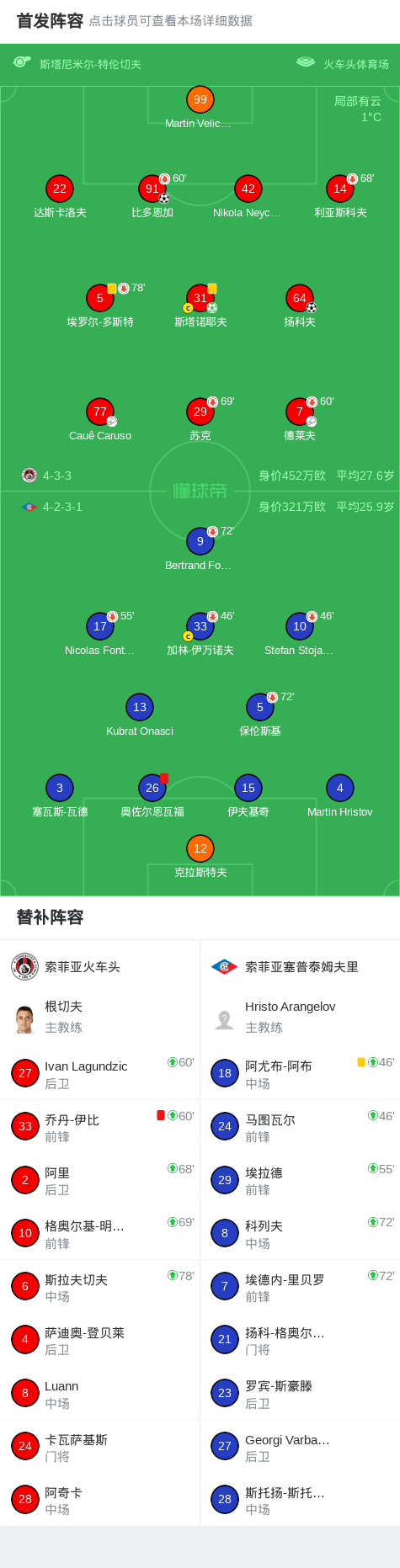 第45分钟,索菲亚火车头球员Cauê Caruso助攻扬科夫打入一球。