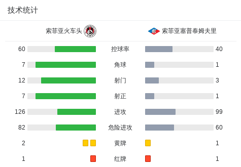 第35分钟,索菲亚塞普泰姆夫里球队奥佐尔恩瓦福吃到红牌。