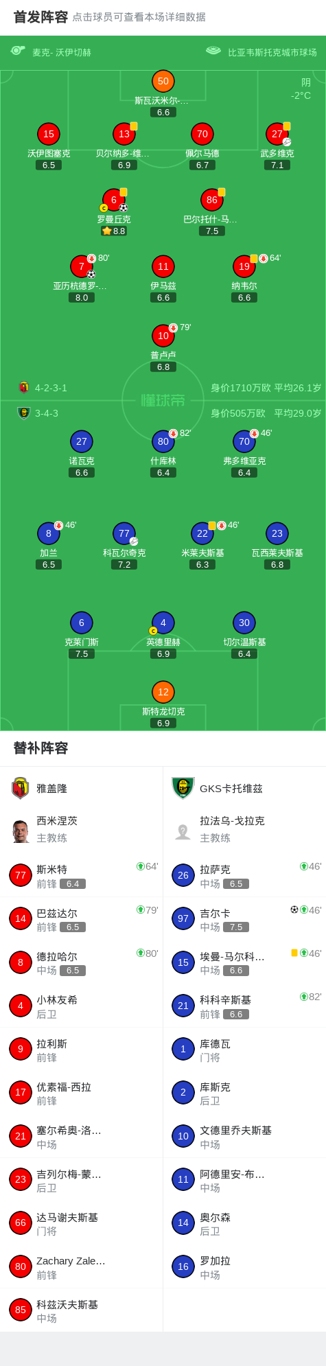 北京时间3月18日波兰足球超级联赛 联赛 第16轮,雅盖隆主场对阵GKS卡托维兹。雅盖隆亚历杭德罗-波索破门,罗曼丘克破门。GKS卡托维兹吉尔卡破门。最终比分雅盖隆 2-1 GKS卡托维兹。