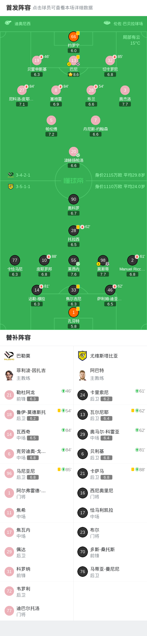 巴勒莫2-2尤维斯塔比亚,莱昂内打破僵局,莫斯蒂扳平