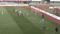 37号姚江山禁区边缘分边,头部受伤的3号郑致云助攻上前传中,10号贝尔杜插入禁区内迎球冲顶攻门得分,青岛黄海队打进了本赛季的首粒进球,场上比分1-2。