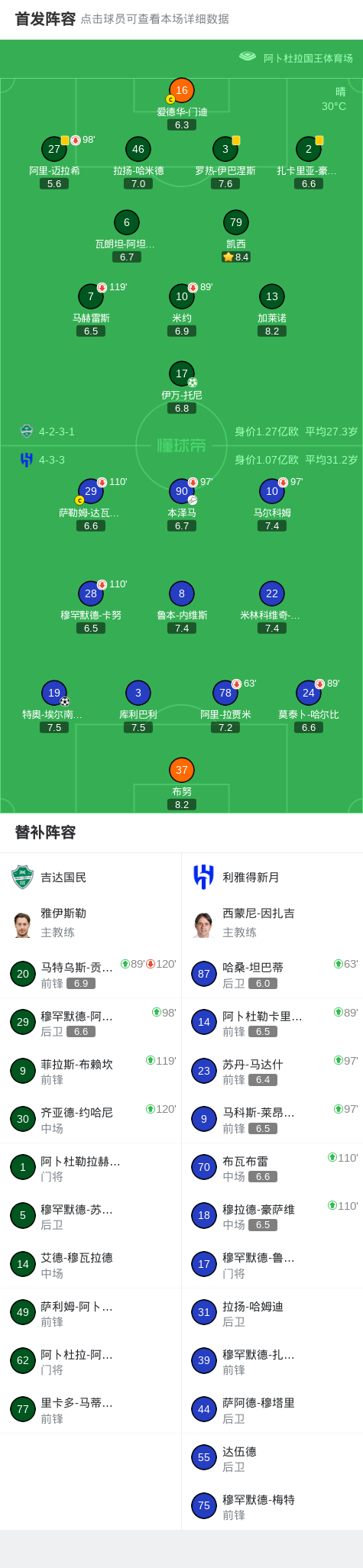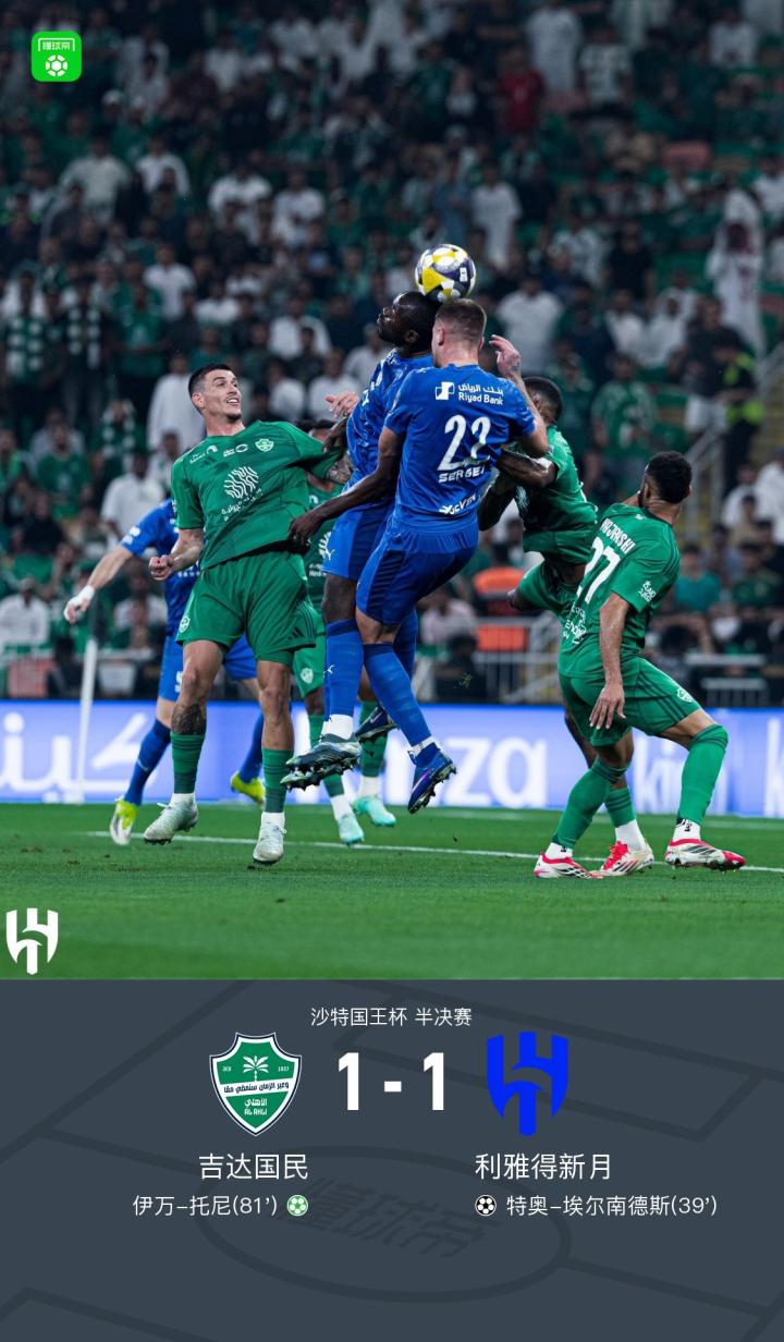 120分钟战报:吉达国民1-1利雅得新月,双方进入点球大战