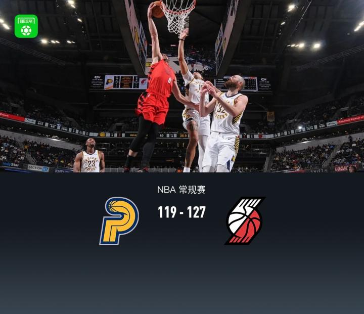 第四节,开节克林根三分命中,紧跟克林根打到祖巴茨头部,后者伤退,随后步行者斯劳森、谢泼德相继得分缩小至12分,开拓者霍勒迪中远投连得5分领先17分稳住局面,但后半节步行者继续反扑,皮特、科比-布朗连续三分迫近至3分分差,比赛还剩最后2分钟,但随后步行者抓住继续追分机会,开拓者霍勒迪三分稳住局面,随后阿夫迪亚、格兰特罚球锁定胜局,最终步行者119-127不敌开拓者。