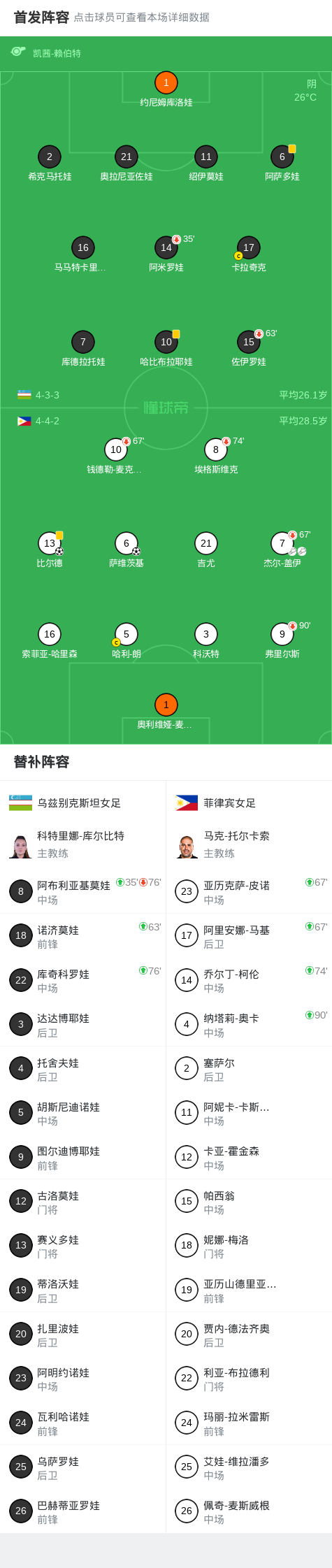 菲律宾女足2-0乌兹别克斯坦女足,比尔德建功,萨维茨基锦上添花