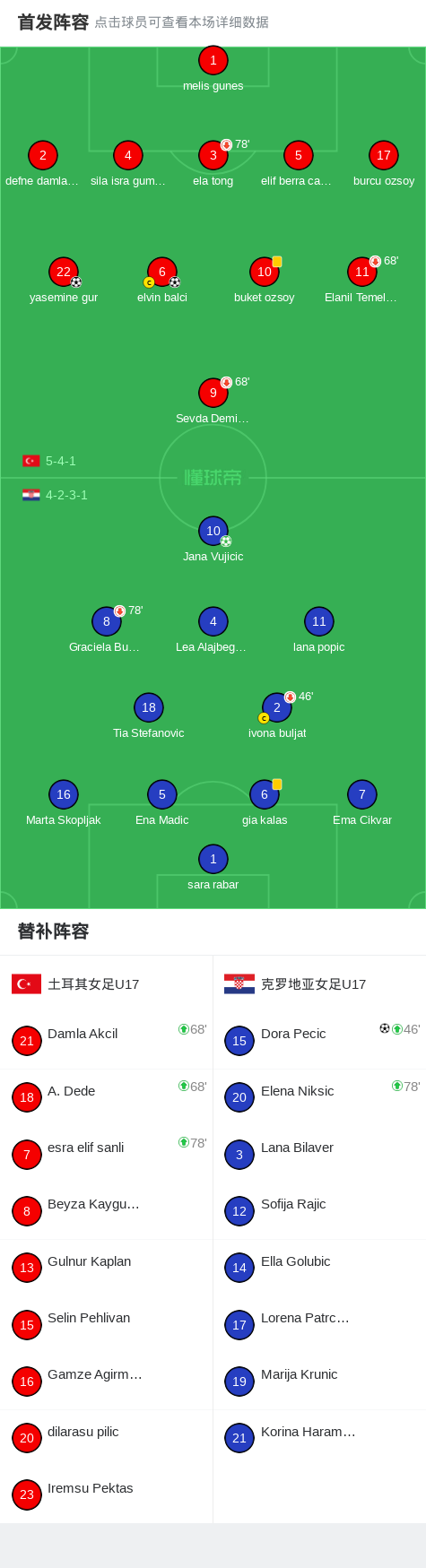 土耳其女足U17 2-2克罗地亚女足U17,Jana Vujicic先拔头筹,yasemine gur救主