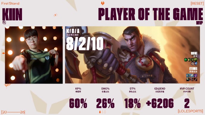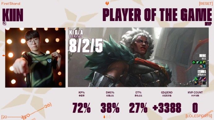 本局MVP给到38输出占比的Kiin!