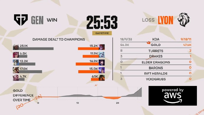 比赛打成竞速游戏,GEN轻松3-0击败LYON第二个晋级先锋赛淘汰赛