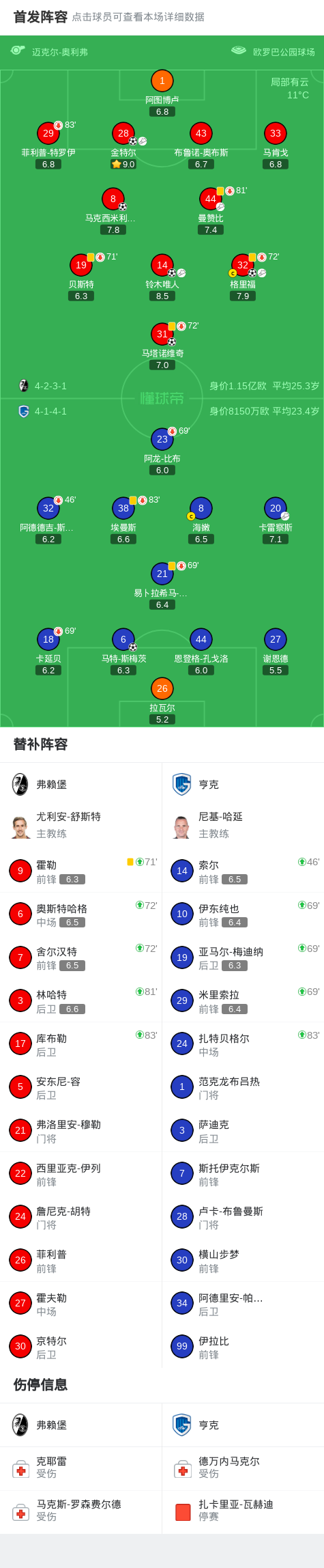第79分钟,铃木唯人助攻,埃格施泰因破门,弗赖堡5-1