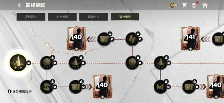 全部完成后,可以解锁最多三项142能力值巅峰荣耀球员卡的专属特惠交换,并且能领取3张141能力值巅峰荣耀球员卡奖励。
