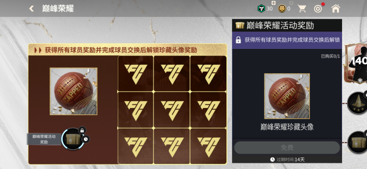 获得所有球员奖励并完成球员交换后,玩家可以在章节内领取巅峰荣耀珍藏头像奖励。