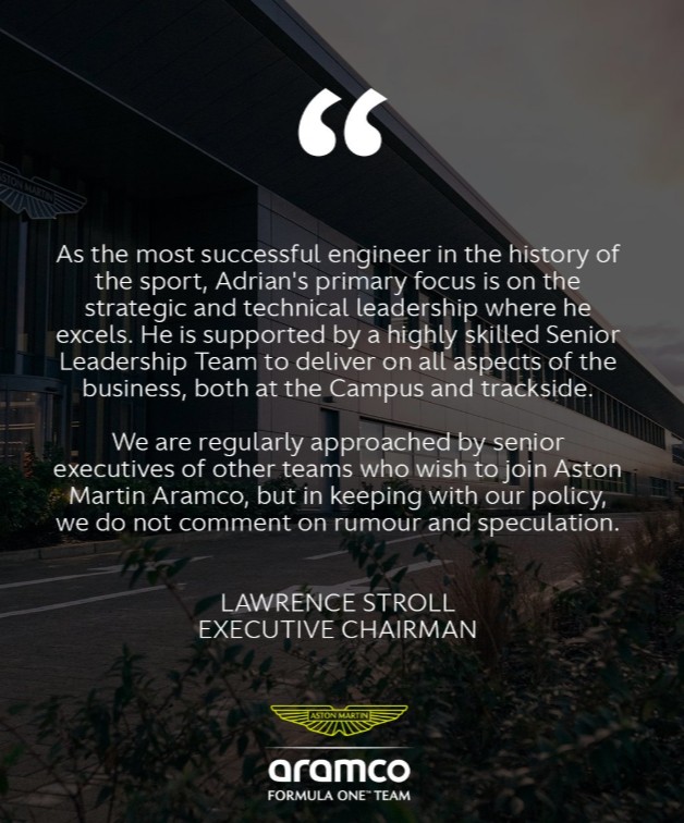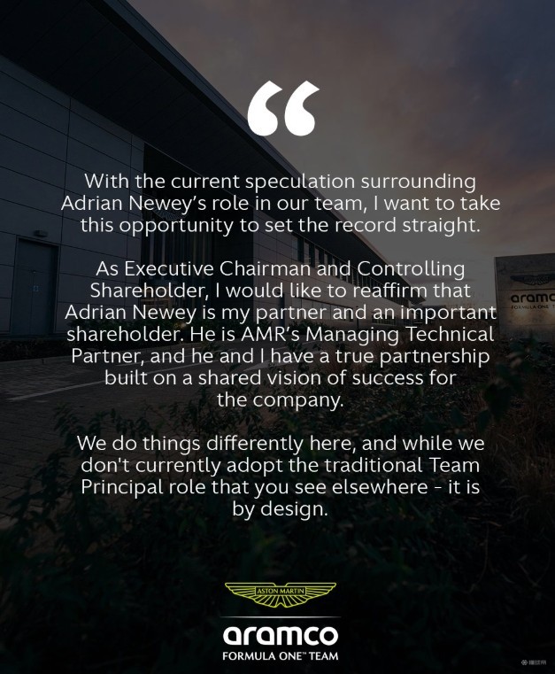 阿斯顿马丁官方声明:纽维是车队重要一员,不会对流言发表评论