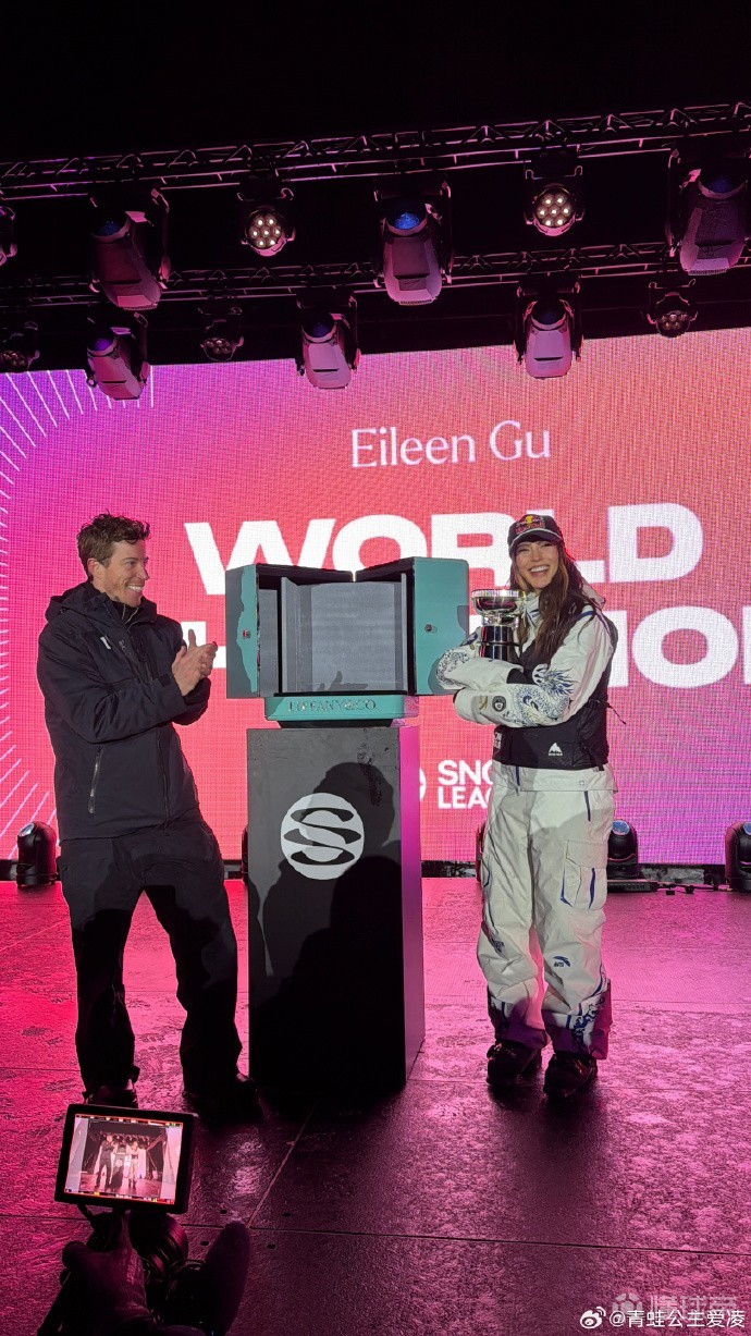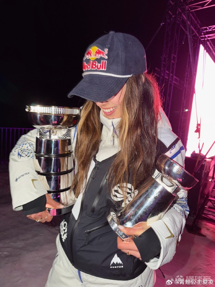最终,谷爱凌连过三关,接连战胜各路名将,成功捧起莱克斯站冠军奖杯。她也由此成为雪盟历史上首位自由式滑雪世界冠军得主。