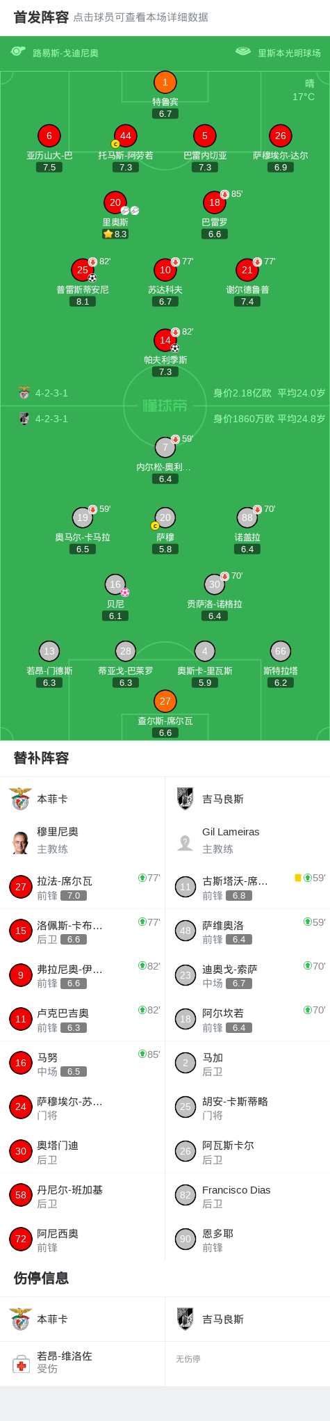 本菲卡3-0大胜吉马良斯,帕夫利季斯、普雷斯蒂安尼破门
