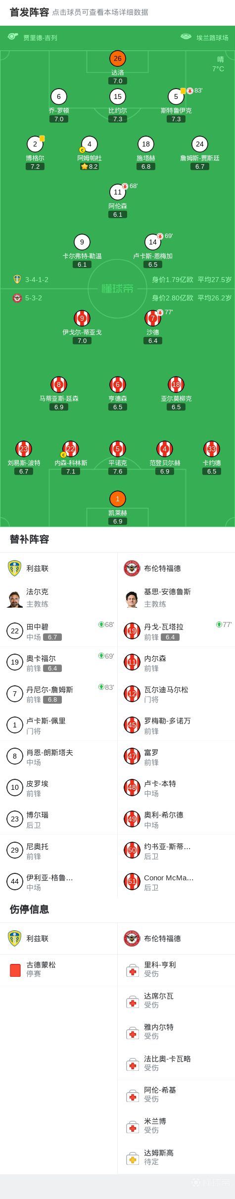 利兹联0-0布伦特福德,主队连续4场英超被零封,小蜜蜂2射正