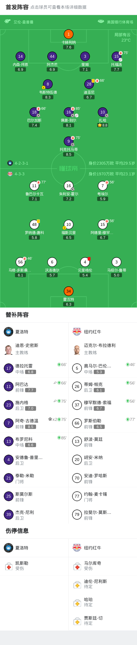 夏洛特6-1血洗纽约红牛,阿奇-古德温两球,扎哈破门