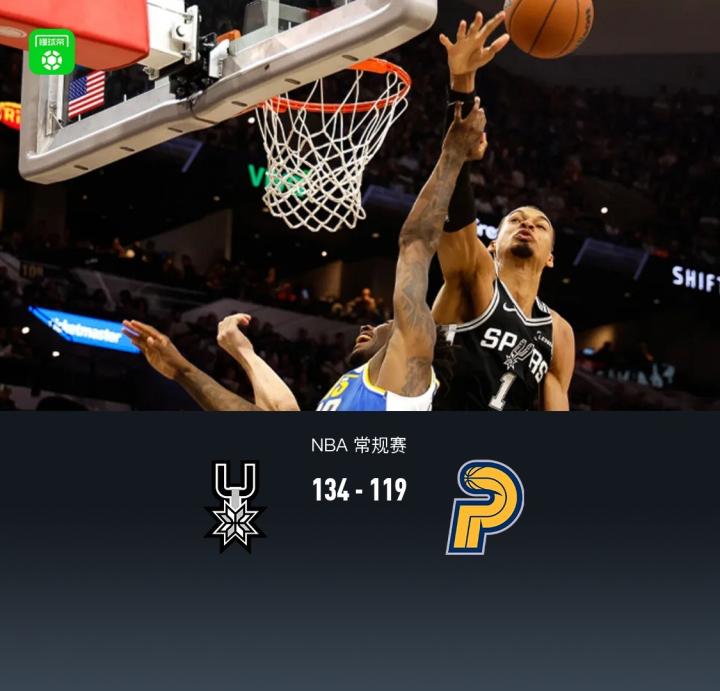 马刺134-119轻取步行者,文班亚马20+8+6+5帽,哈珀首发24分
