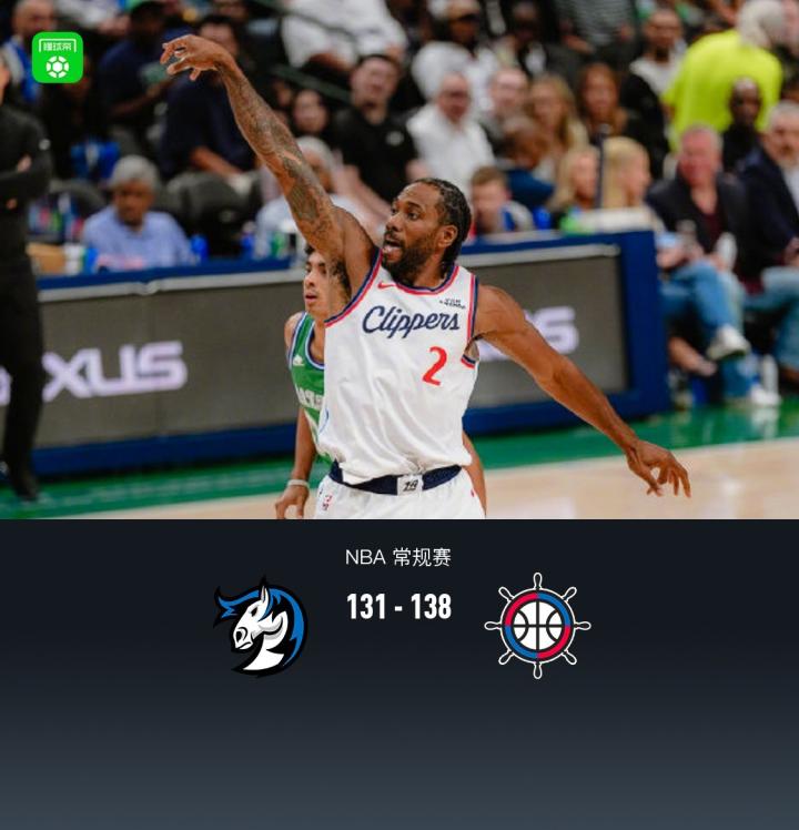 加时赛,上来独行侠内姆布哈德率先得分,紧跟快船多点开花一波11-0直接领先9分,随后伦纳德连续中远投杀伤比赛悬念,最终独行侠131-138不敌快船。
