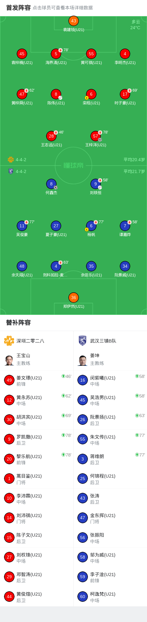 深圳二零二八1-1武汉三镇B队,何鑫杰破门,王梓洋扳平