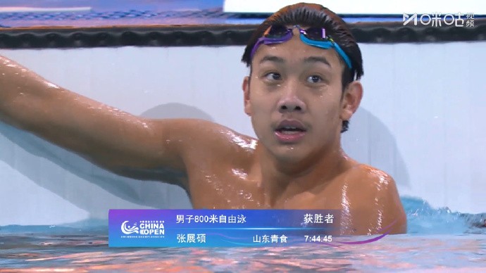 18岁张展硕夺得男子800米自由泳冠军,潘展乐无缘领奖台