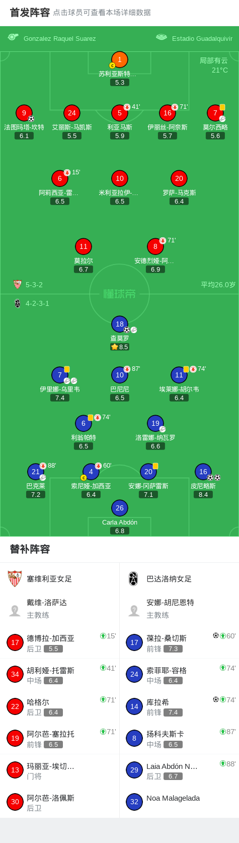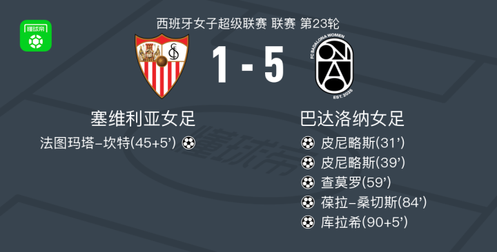 巴达洛纳女足5-1大胜塞维利亚女足,皮尼略斯梅开二度,库拉希建功