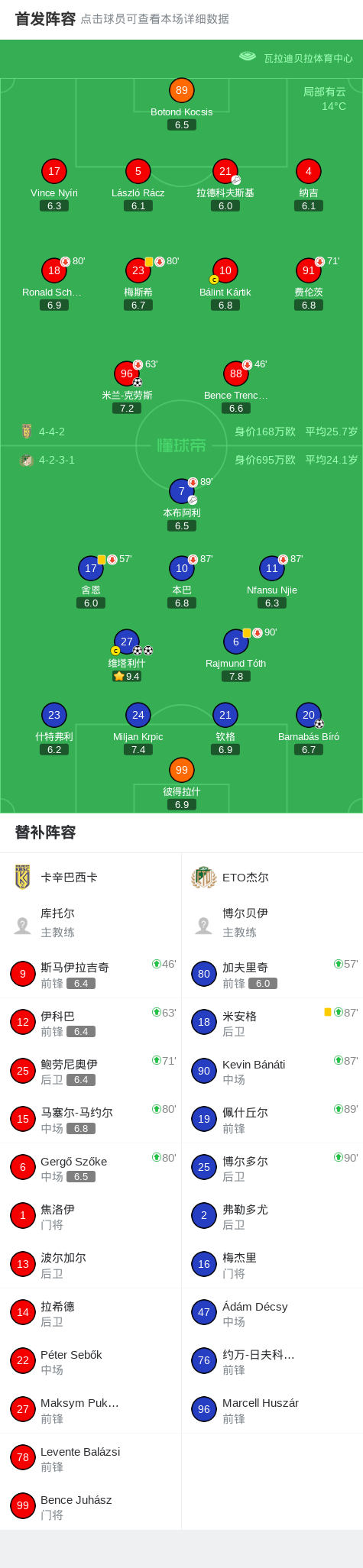 ETO杰尔3-1逆转卡辛巴西卡,维塔利什梅开二度,Barnabás Bíró破门
